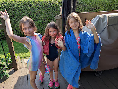 Belle semaine d'extérieur qui est passée rapidement. Plusieurs baignades à la maison, un cours de natation et deux fois à la piscine municipale. Pendant que je travaillais.